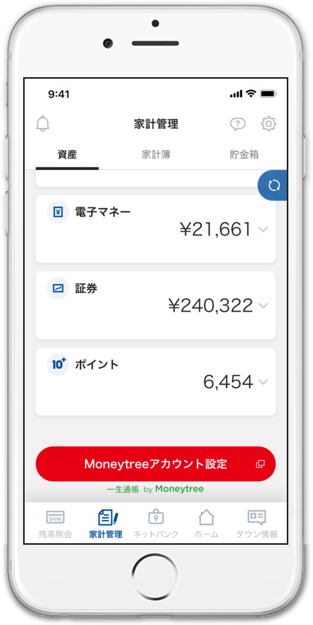 - 個人資産管理アプリ「Moneytree」との連携による資産管理機能