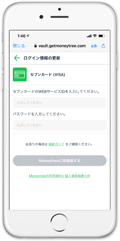 - 「Moneytree」アプリのアカウント情報を入力いただき、「ログイン」をタップすることでMoneytreeに登録している口座情報をご確認いただけます。