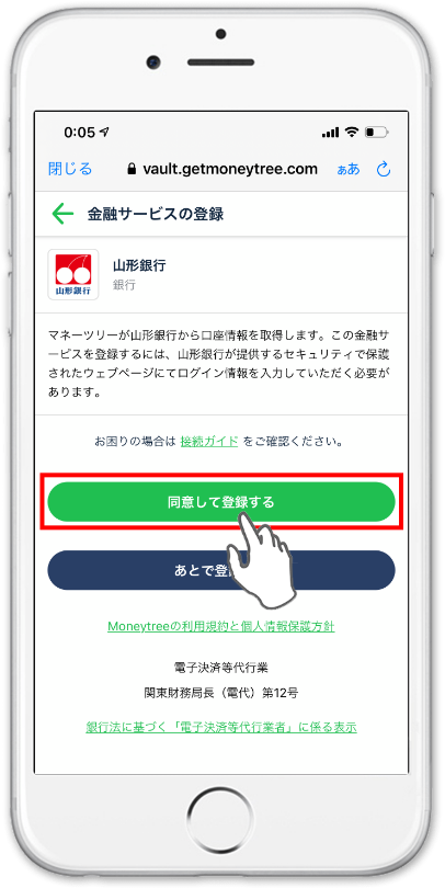 初めて本機能を利用する場合、以下の手順でMoneytreeアカウントを新規登録する必要があります。
