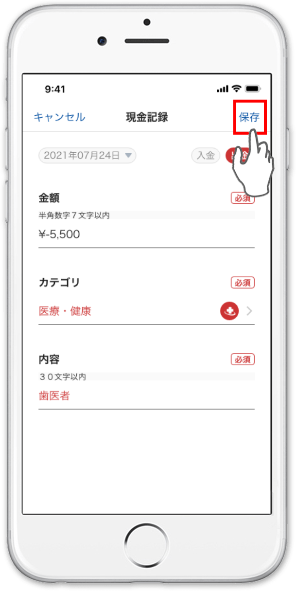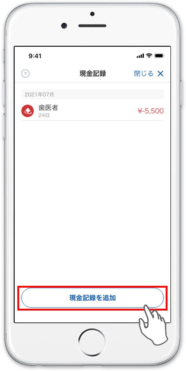 - 「現金記録を追加」をタップすると現金記録登録画面に遷移します。