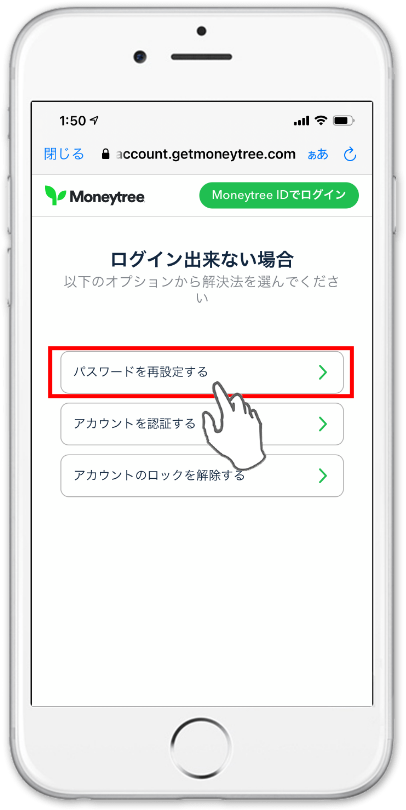 Moneytreeアカウントのパスワードを忘れた場合、以下の手順で再設定をしてください。