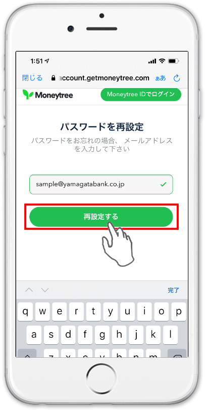 - 入力エリアに再設定を希望するメールアドレスを入力後、「再設定する」をタップします。