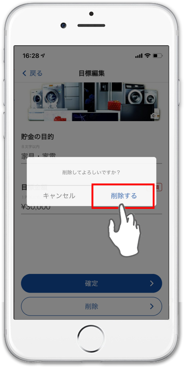 貯金目的を削除する場合、以下の手順で削除することができます。
